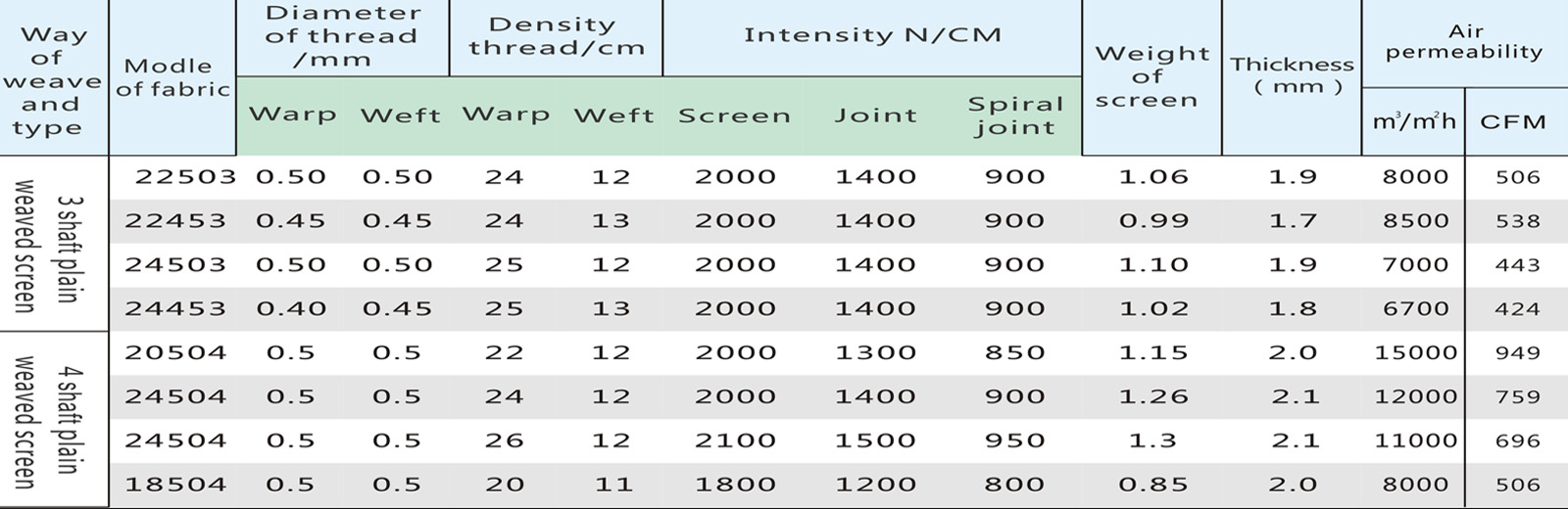 - 3 shed 1.5 layer drying screen is suitable for writing paper, offset printing paper, fruit packaging paper, etc. gsm less than 70.